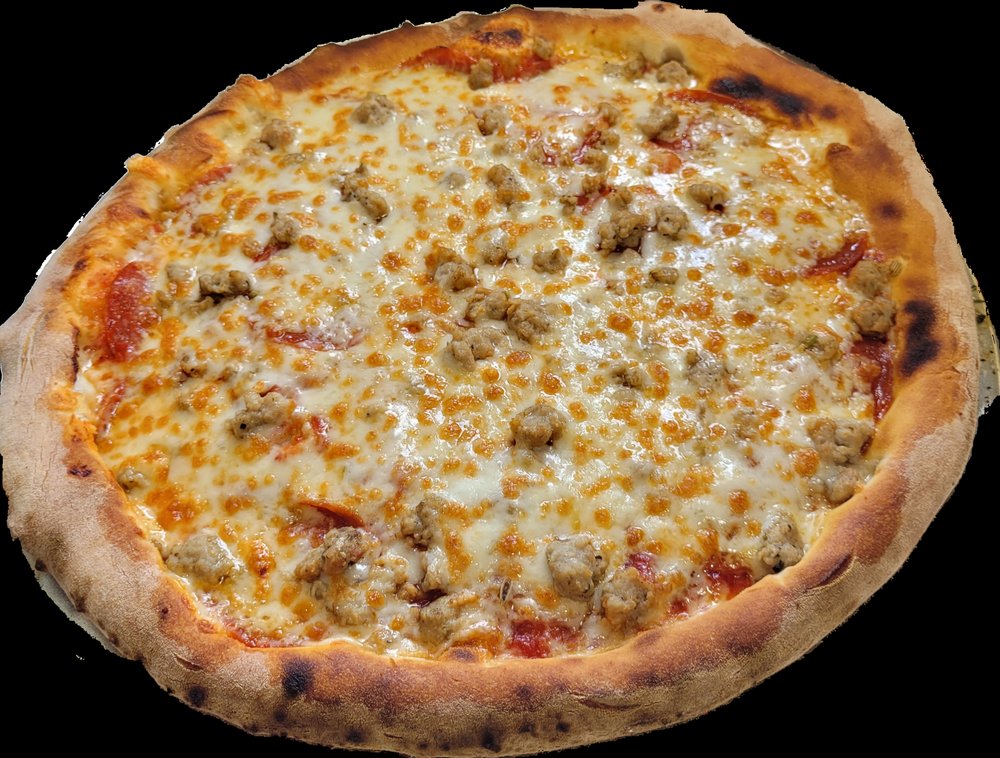 Traditional Meats Pizza Toppings.Pepperoni, Italian Sausage, Beef, Bacon, Ham Moz & Provolone Cheese on the top.